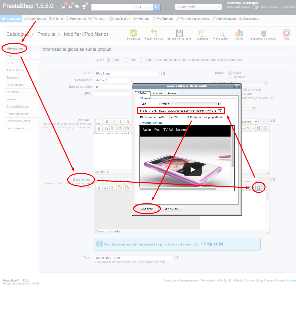 Hello Germain, tu as clairement raison : ça fait vendre ! J’avais oublié ton lien / tuto pour ajouter la vidéo dans la description. Tu peux ajouter la vidéo via le code fourni ou en copiant-collant l’url dans l’outil de PrestaShop, ça fonctionne 😉