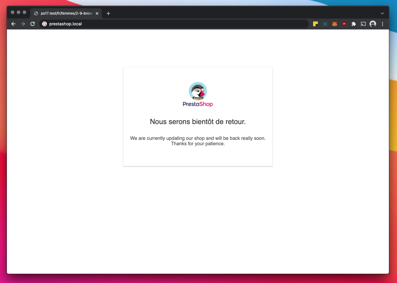 A quoi ressemble la page de maintenance de PrestaShop ?