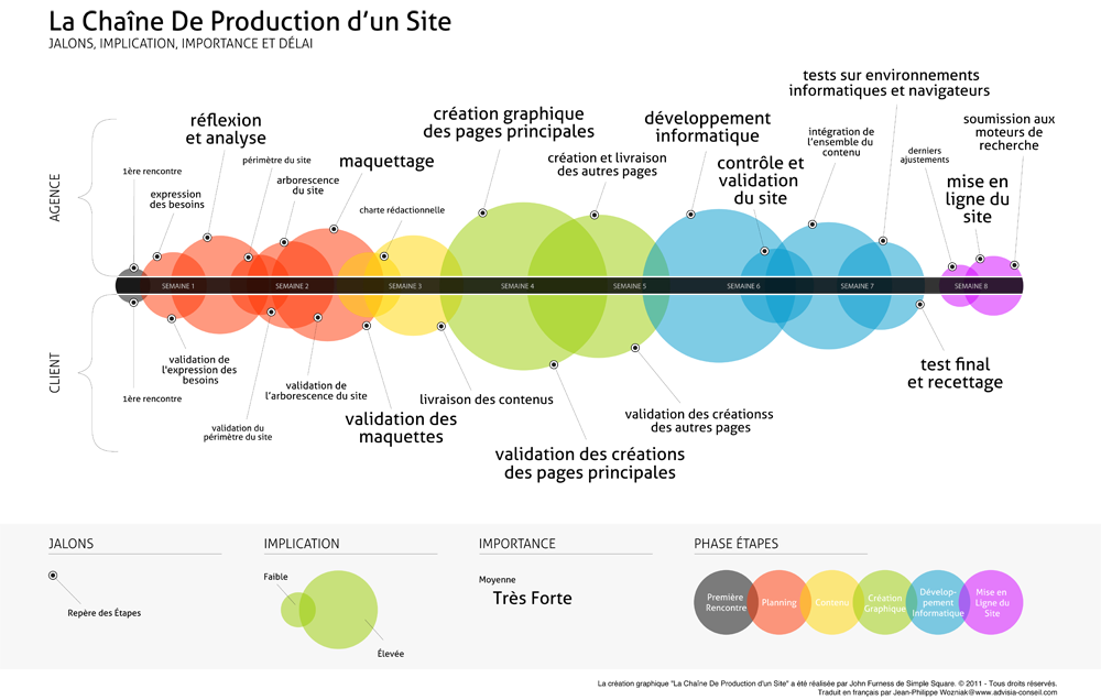 • un projet web digne de ce nom s’étale en moyenne sur 8 semaines (2 mois) donc quand j’entend « je voudrais un site pour dans 3 jours »…on rigole un peu 😉