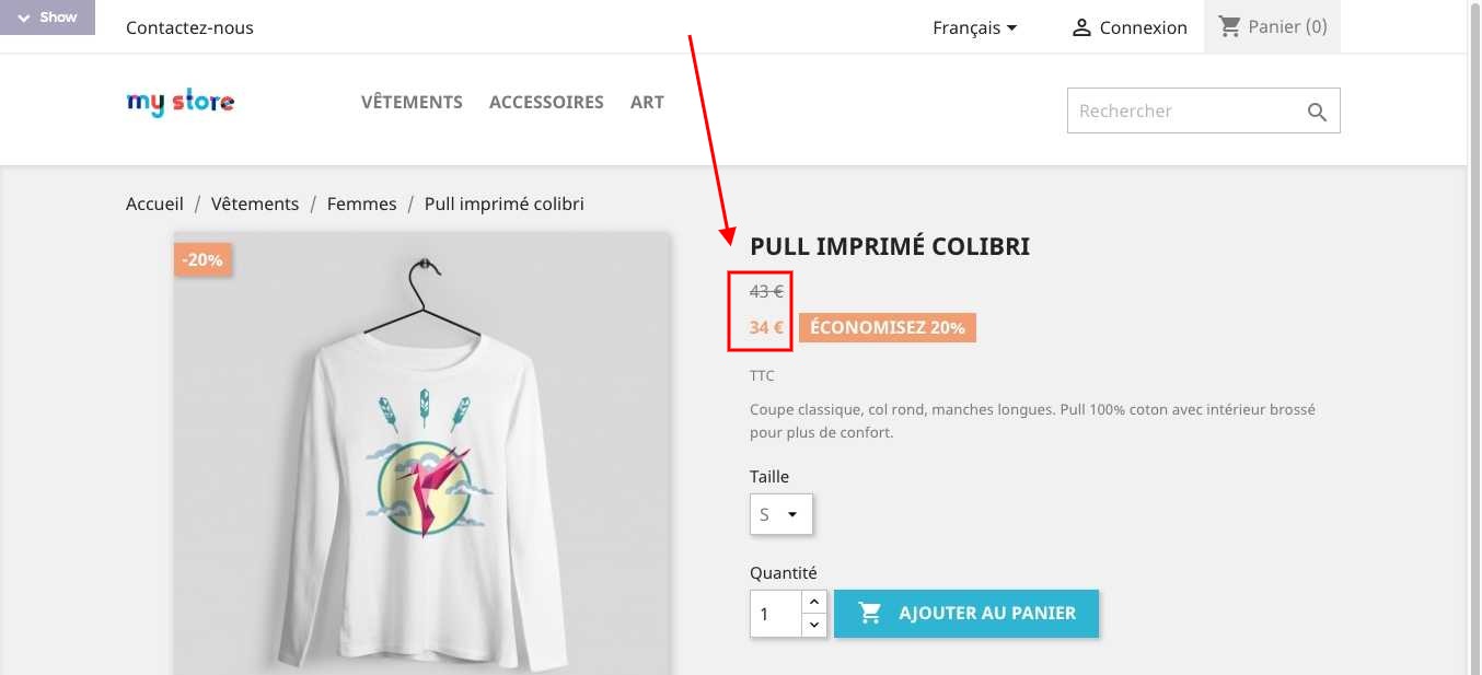 Une fois que vous avez mis l’option à « 0 » dans le champ « Nombre de décimales« , le front office affiche toujours les décimales.