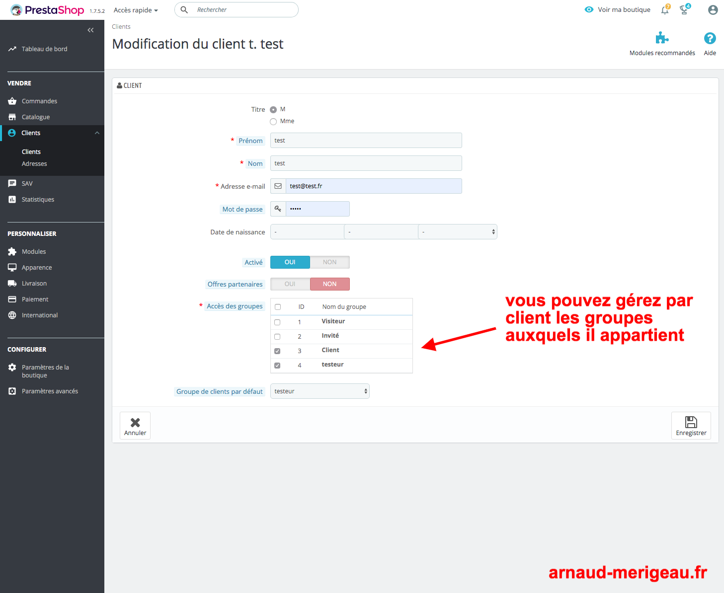 Sur presta on à donc 3 groupes par défaut