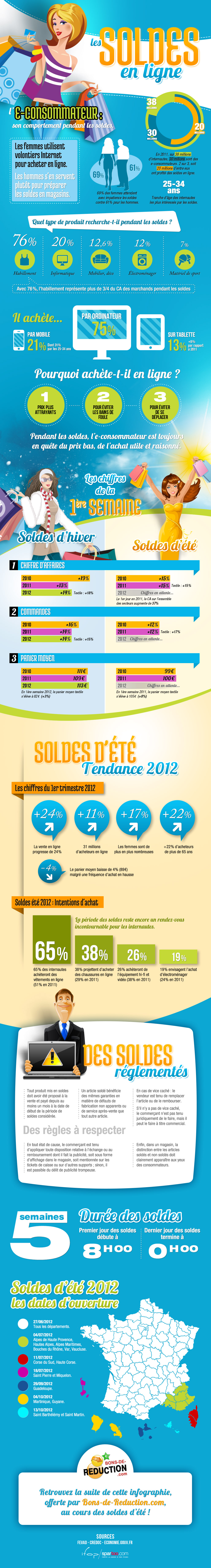Une bien belle infographie vient d’être publié par nos amis de Bons-de-reduction.com présentant les chiffres clés des soldes en ligne en 2012. C’est parti !