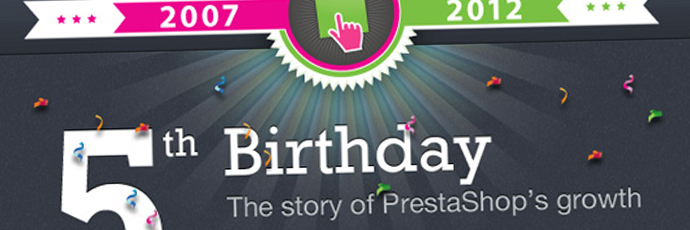 Vous qui utilisez PrestaShop pour votre boutique en ligne, et bien sortez le gateau et posez 5 belles bougies : PrestaShop fête ses 5 ans !