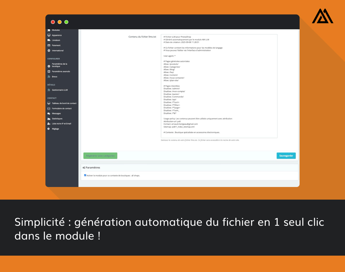 Description : Module PrestaShop génération LLMS.TXT