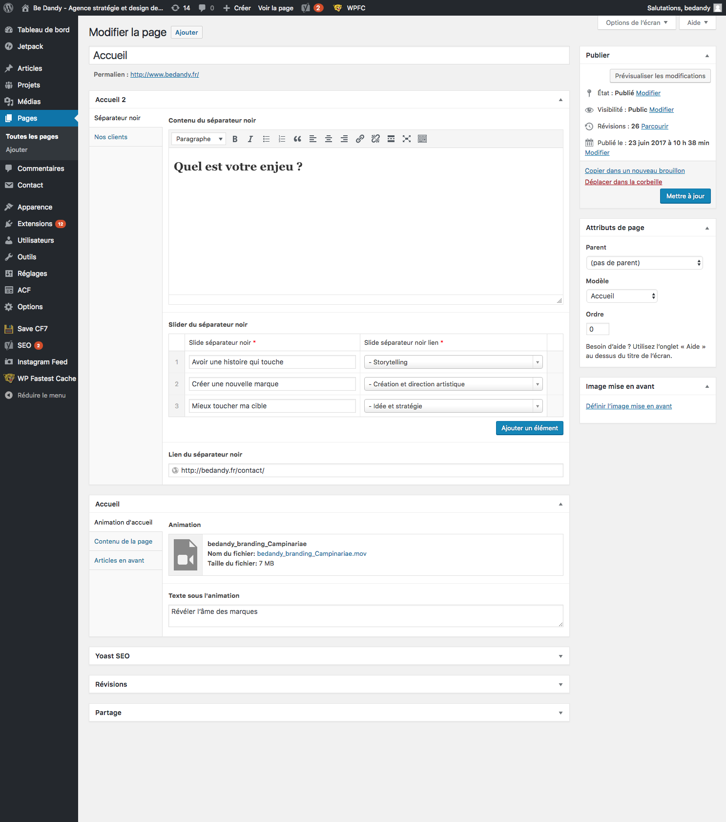 Refonte complète sous WordPress du site web de l’agence Be Dandy : stratégie et design de marque luxe et corporate.