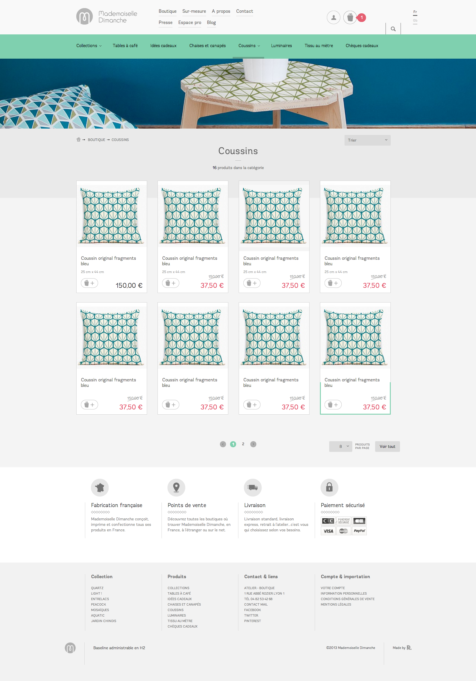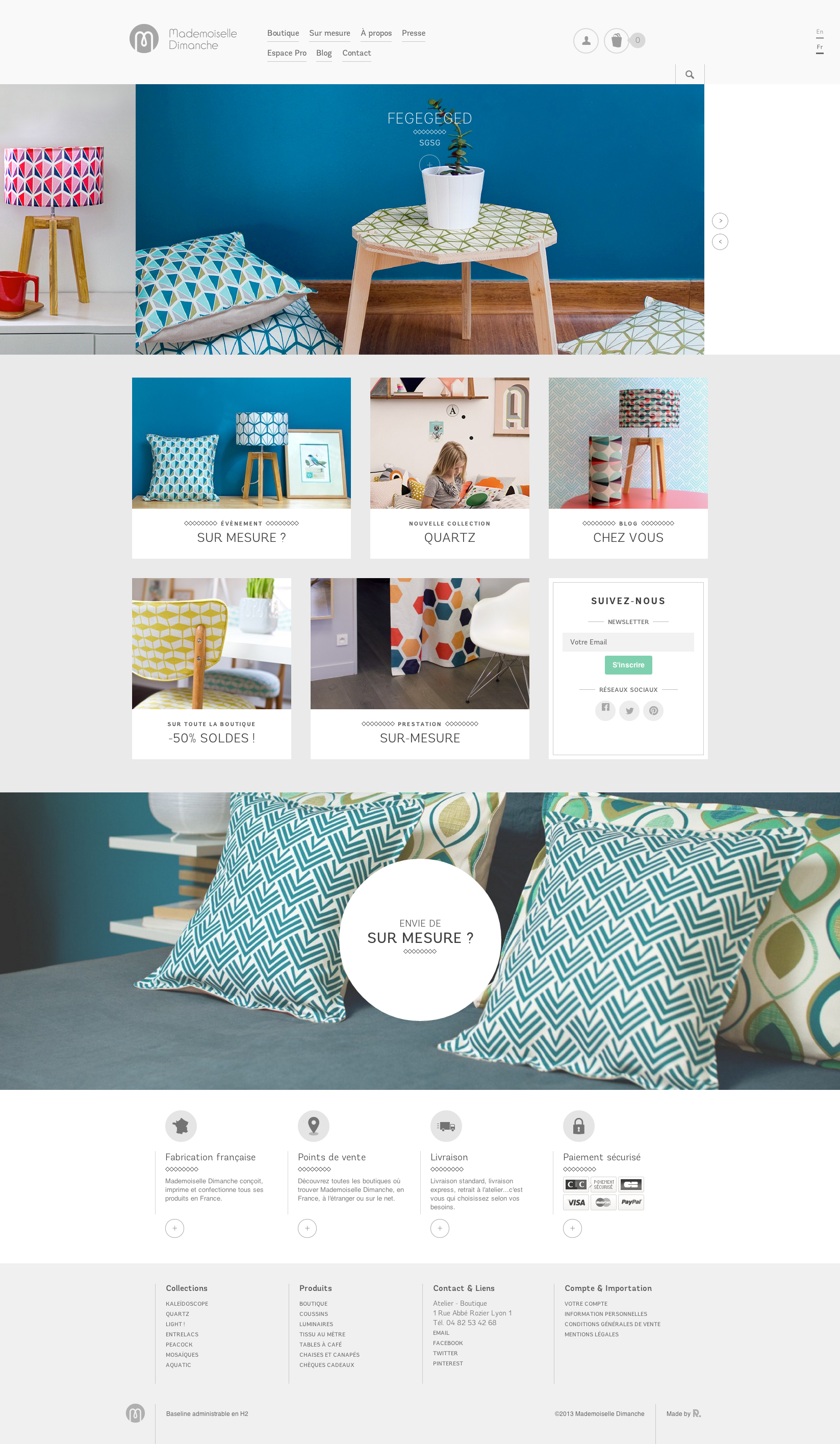 Intégration PrestaShop 1.5 responsive de maquettes graphiques dans le cadre de la refonte de la boutique en ligne de décoration Mademoiselle Dimanche.