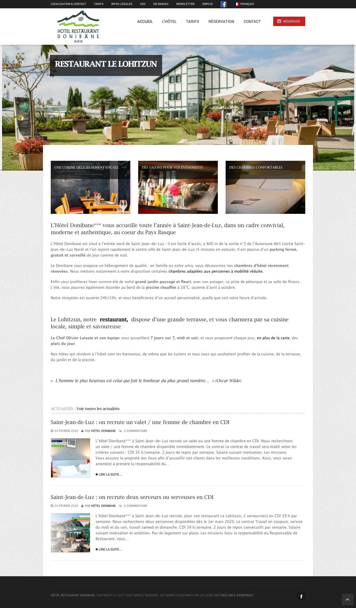 L’hôtel Donibane est le reflet de la gastronomie basque avec un accueil chaleureux. La refonte sous WordPress du site web vitrine est basée sur un thème responsive optimisé pour les tablettes et mobiles.