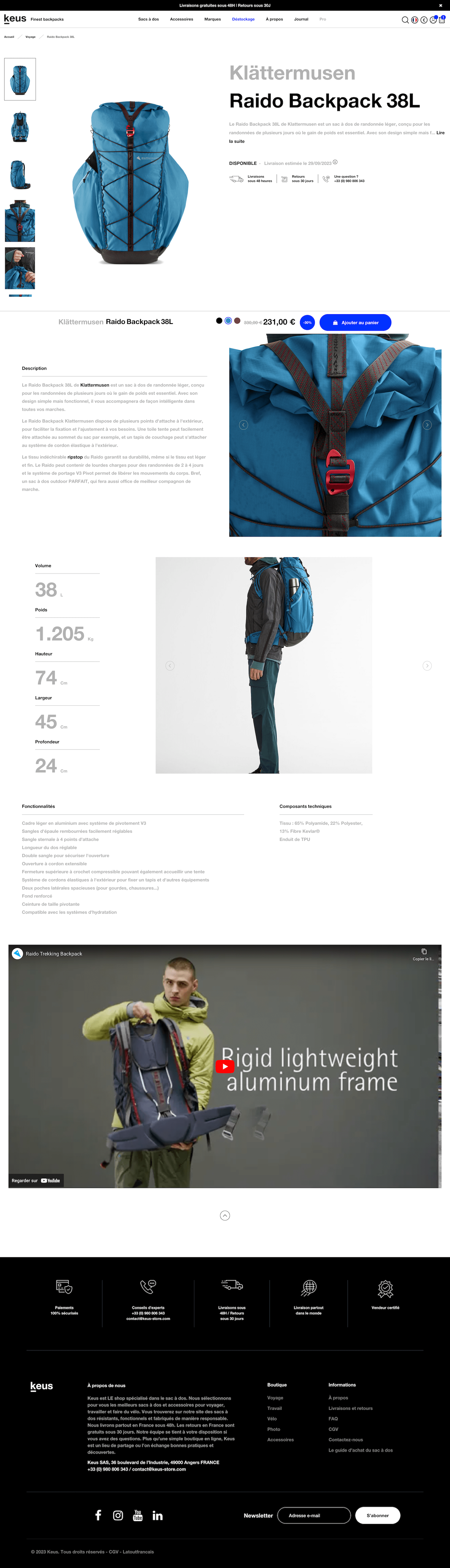 Page produit du site web Keus Store Page produit du site web Keus Store