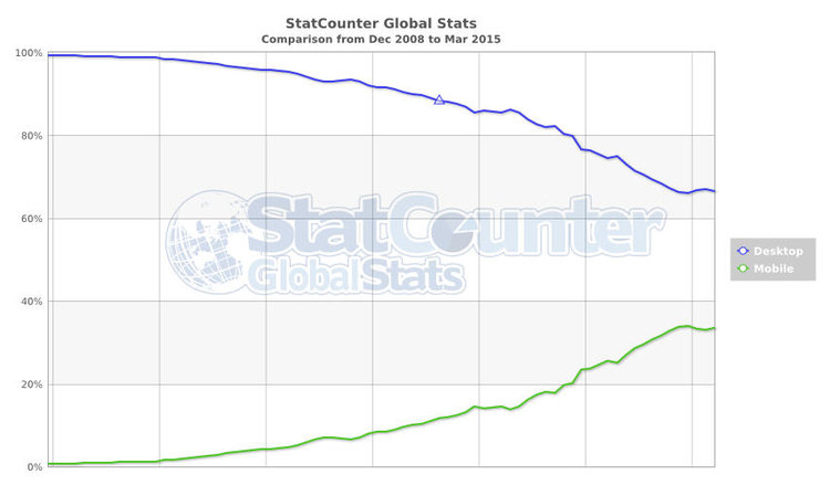 L’infographie ci-dessus proposée par Wearesocial.fr montre qu’en janvier 2015, la part du trafic mobile en France représente 15% du trafic web global. On note également que ce pourcentage grimpe vite notamment pour des pays d’Asie ou d’Afrique.
